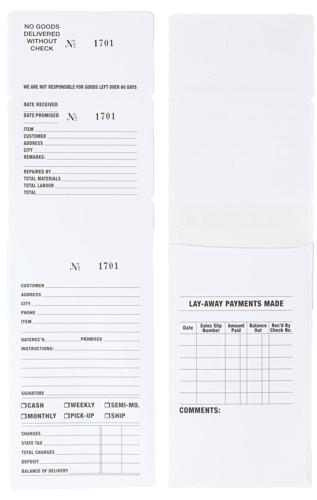 • 2 detachable stubs for customer and your records / filing